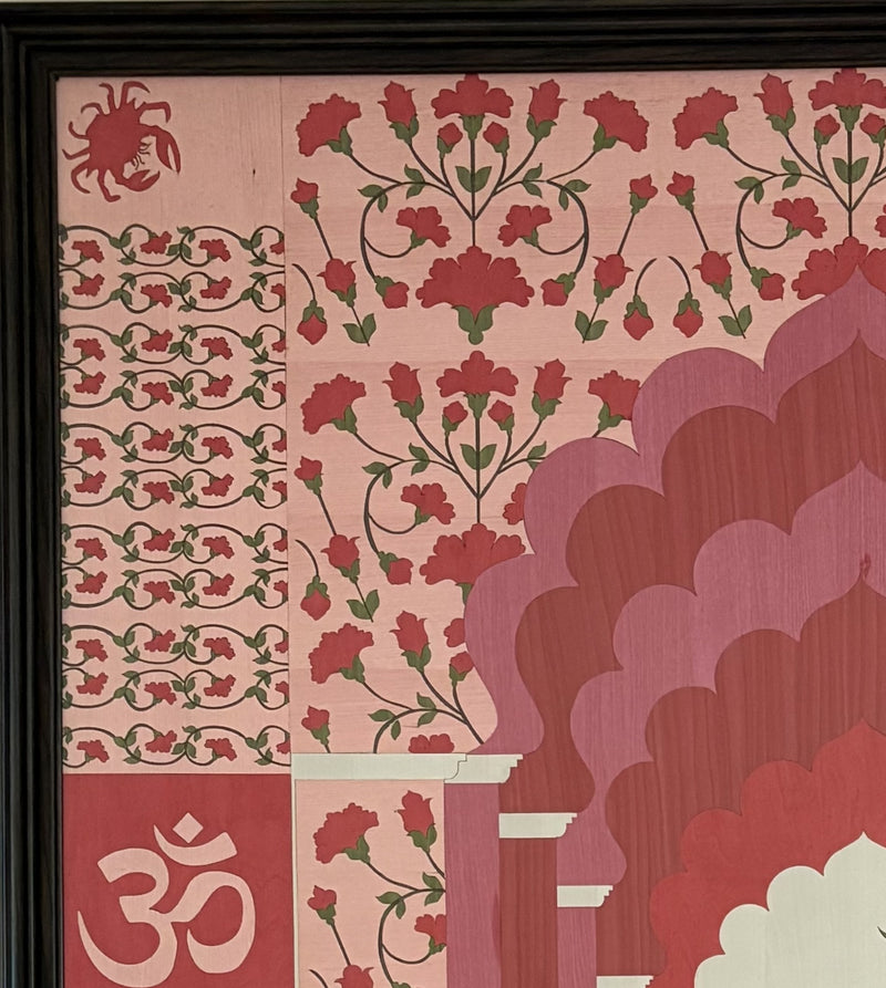 Each layer is thoughtfully cut and composed by hand, creating subtle patterns and depth that come alive in changing light. The result is a piece that feels warm, tactile, and grounded.
